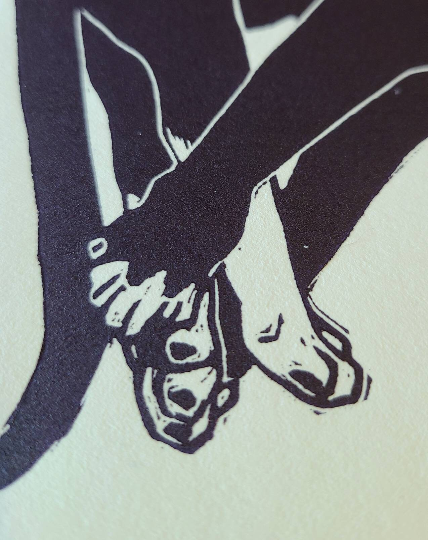 Waiting Patiently - Linocut Print on Washi Paper - LinoCat Collection