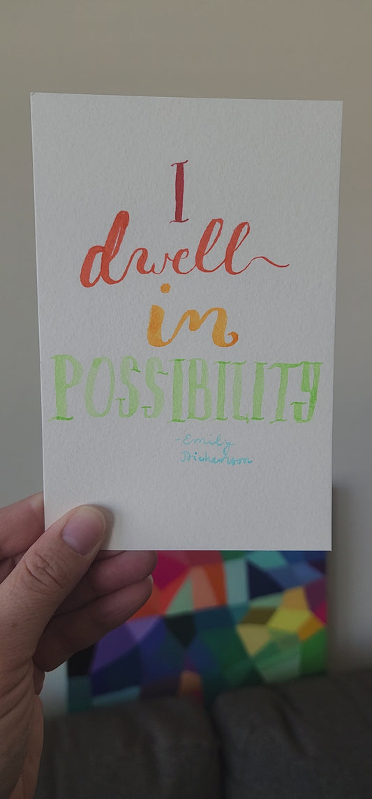 Emily Dickenson I Dwell in Possibility ORIGINAL Handlettered Female Empowerment Quote Artwork